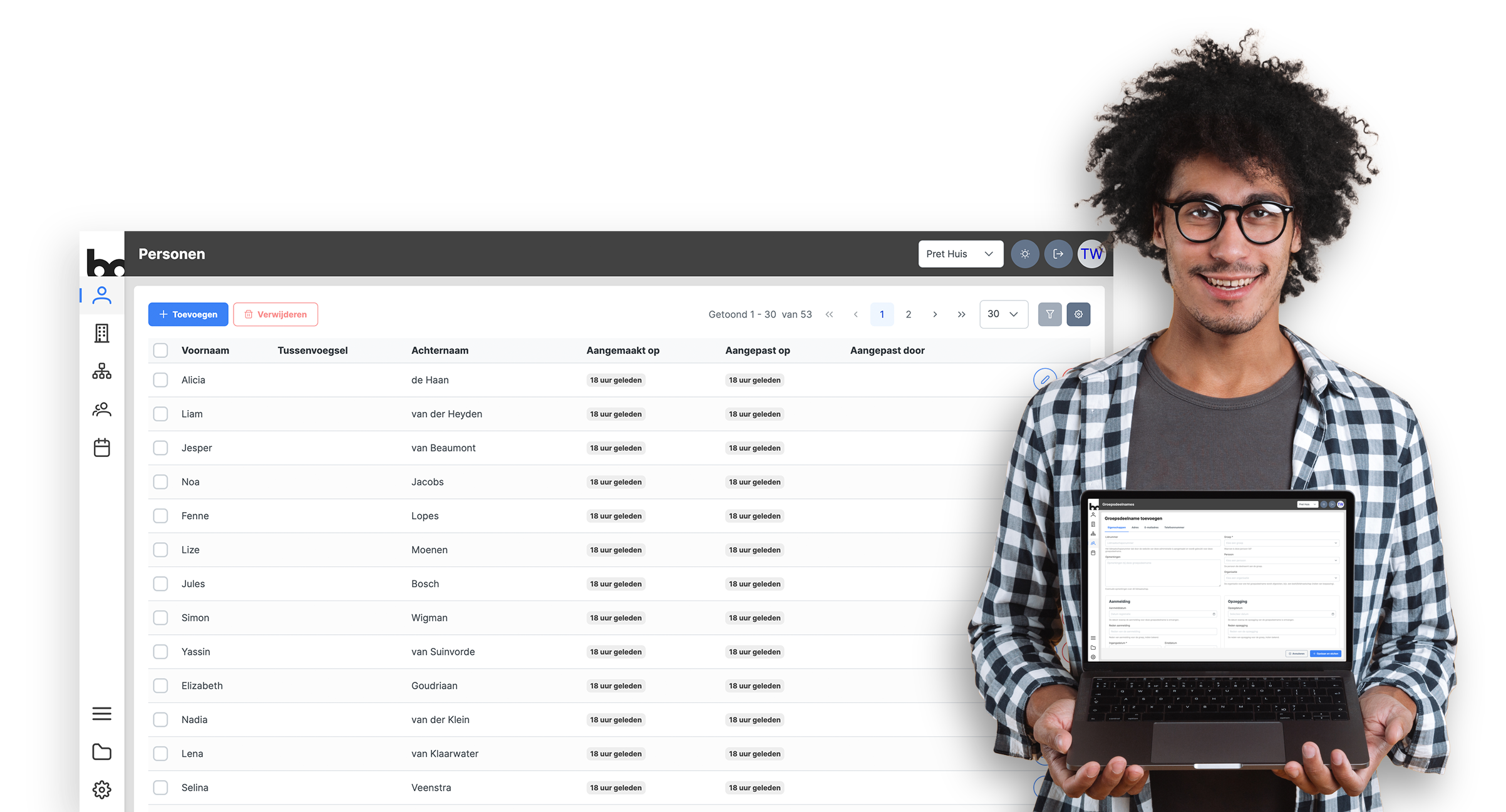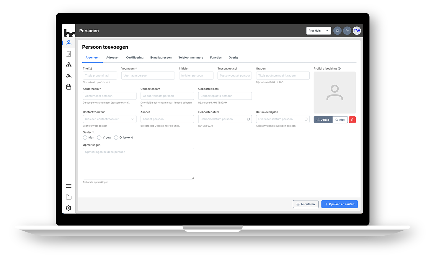 Heb je één of meerdere administratie, alles kan in onze omgeving. Eenvoudig beheer van basis gegevens of flexibele velden. Jij bepaalt welke data je wil opslaan.